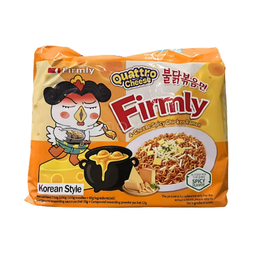 Soup (23.8%): water, artificial mixed cheese flavour, white sugar, soy sauce, artificial chicken flavour red pepper powder, soybean oil onion powder, garlic powder, tapioca starch, yeast extract powder, paprika powder, flavour enhancer [disodium 5′-ribonucleotide (e635)], black pepper powder, salt.