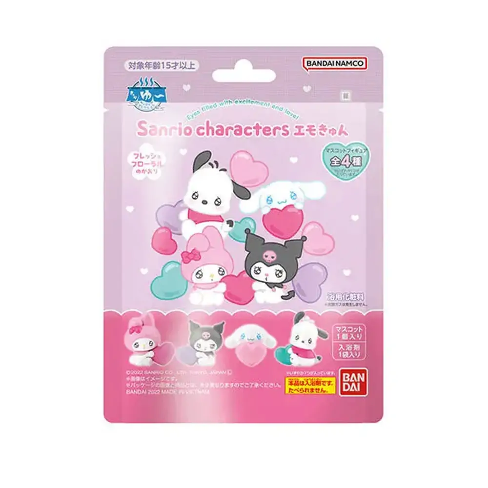 Your favorite Sanrio characters present you with a heart, with their eyes full of sparkling hope! Each of these sweet figures come with a packet of bath salts. Add a packet to your bathtub when you’re filling it; the bath salts will slightly color your bath water and give it a fresh floral scent. There are four different figures to collect and trade; we’ll send you one randomly chosen figure with bath salts. Order yours today!