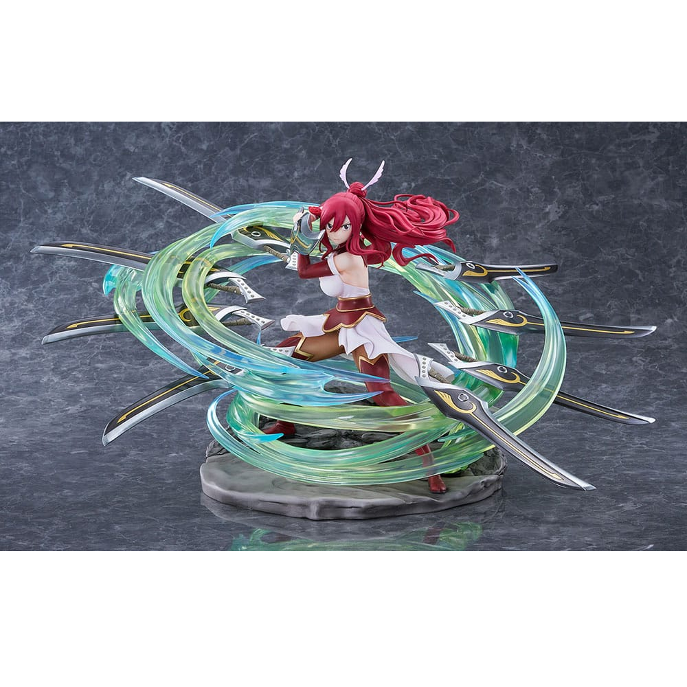 Hiro Mashima népszerű manga-sorozatából, a “FAIRY TAIL”-ből származik Erza Scarlet, az Ataraxia páncélját viselő méretű figura, fehér ruhával és szárnyszerű kardokkal.