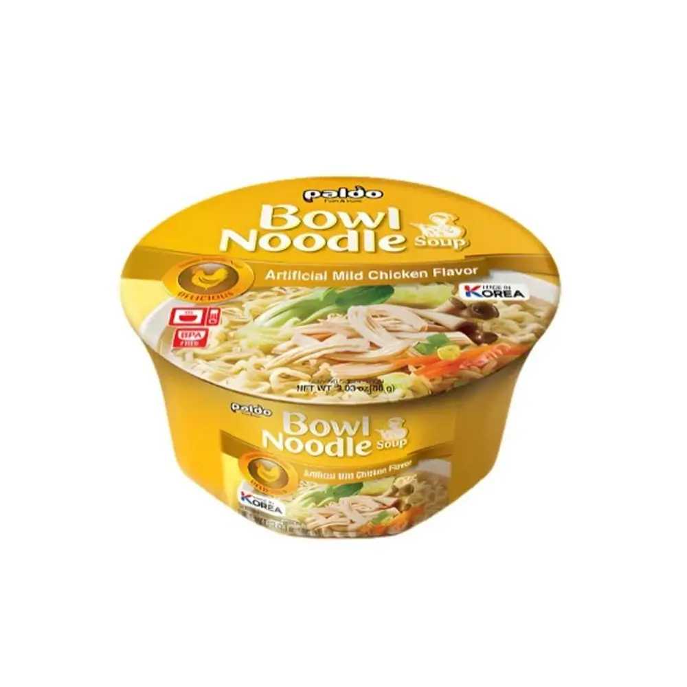 Összetevők: Tészta: Dúsított búzaliszt, pálmaolaj, burgonyakeményítő, módosított keményítő (burgonya, tápióka), só, emulgeált olaj [napraforgóolaj, lecitin (szója)], hagymakivonat, lúgosítószer (kálium-karbonát, nátrium-karbonát, dinátrium-foszfát), guargumi, dinátrium-foszfát, repceolaj. Levesalap: Mesterséges csirkearoma por, ízfokozó (nátrium-glutamát), szójaszósz por (szója, búza, só), só, cukor, maltodextrin, fokhagymapor, dikalcium-foszfát, ízfokozó (dinátrium-inozinát, dinátrium-guanilát), fekete bors por, szójaolaj. Pehely: Szárított sárgarépa, szárított pak choy.