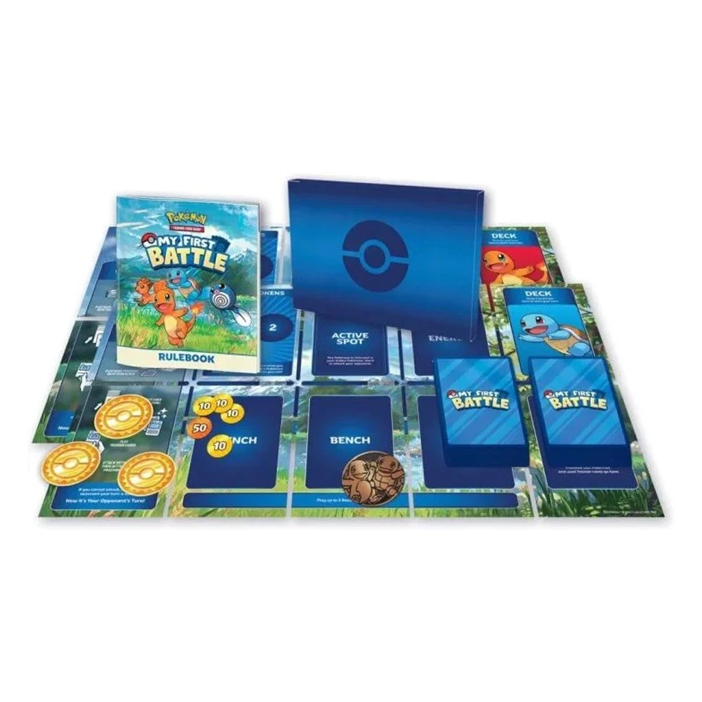 Ha mindig is szerettél volna családoddal és barátaiddal együtt játszani a Pokémon Trading Card Game játékkal, a Pokémon TCG: My First Battle készlet tökéletes bevezető. Az egyszerűsített játékmenetnek és a megbízható útmutatónak köszönhetően készen álltok a közös edzésre és harcra. Minden benne van, amire két játékosnak szüksége van!